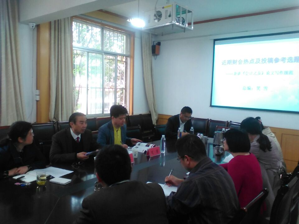2015年5月24日下午,《会计之友》(全国中文会计类核心期刊,一级期刊)杂志社笑雪总编与中国矿业大学朱学义教授受邀来到公司召开学术研究座谈会,出席座谈会的有经管公司经理巩海霞、副经理唐文霞、副书记方升以及相关专业负责人及老师。笑雪总编做了题为“特殊学术期刊——《会计之友》发展之路”的报告,介绍了《会计之友》的办刊定位、学术地位、评审流程以及刊登论文的内容、规范、格式等要求。朱学义教授对会计热点问题进行了讲解。之后,笑总编、朱教授与与会教师热烈讨论了投稿参考选题及技巧等内容。该活动促进了教师与杂志社之间的交流、联系,为公司科研工作起到了积极的推动作用。(供稿:王传彬、曲雅萍)