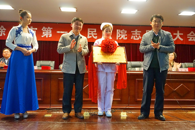 在本次会议中,团市委副书记夏友峰代表团市委授予威廉希尔经济管理与人文公司为徐州市志愿服务培训基地,公司党总支书记胡永代表公司授予徐州市第一人民医院为青年志愿服务基地。