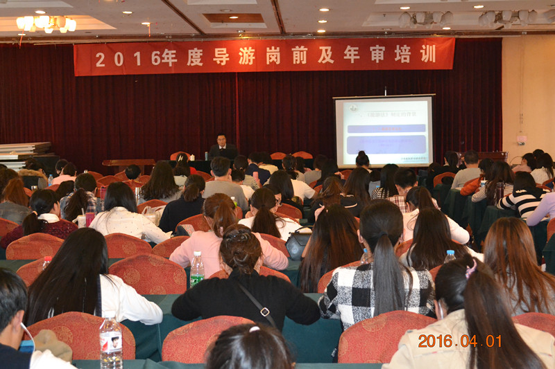 4月2日至4月3日,徐州市旅游局组织开展了2016年度导游岗前及年审培训,近530名导游员参加了此次培训。作为江苏省旅游培训基地专家,公司商贸旅游系主任刘胜勇受邀为参训人员集中授课。