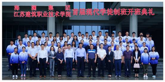 9月27日下午,公司经济管理与人文公司、海澜集团有限公司合作举办的“现代学徒制试点班”开班典礼隆重举行。公司经理孙进、副经理曾凡远,海澜集团有限公司人力资源总监吉敏生及经济管理与人文公司党政领导、海澜集团领导出席了开班典礼。