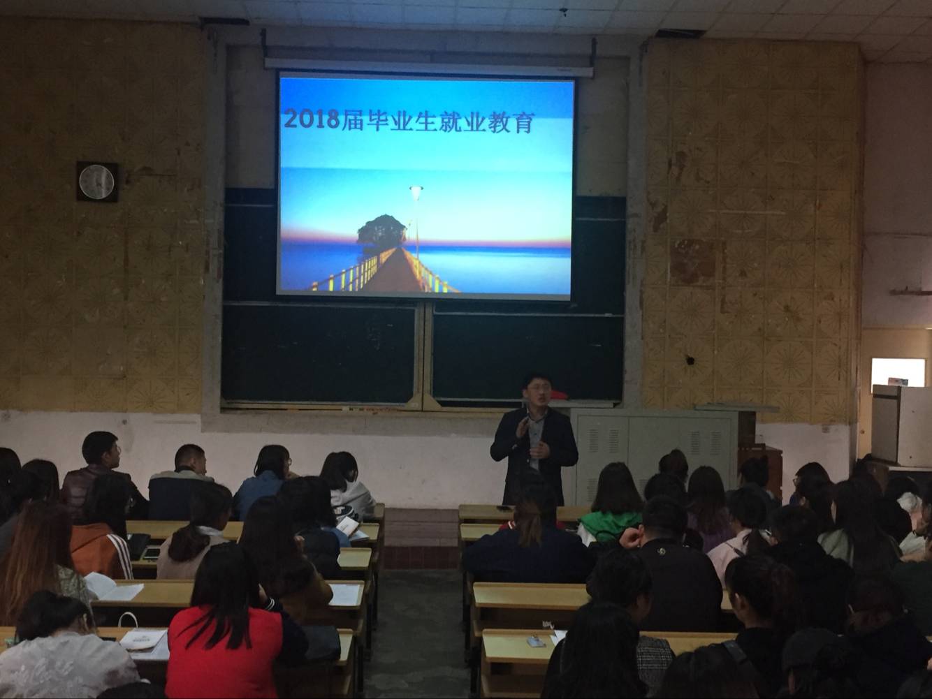 专职辅导员孙峰老师就相关具体政策进行了解读,重点就《就业协议书》的签署、毕业派遣、档案邮寄作了详细说明,对10月28日公司2018届毕业生供需双选会作了要求。