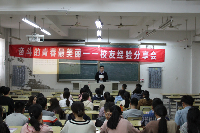 2017年10月20日下午3点,经管公司于教三D-104举行了“奋斗的青春最美丽”——员工经验分享会。11级员工陈鹏飞(法学硕士)前来公司分享交流。17级电商专业全体员工参加本次分享会。此次活动以“奋斗”为主题,通过主题演讲的形式激励员工养成时刻学习的好习惯。