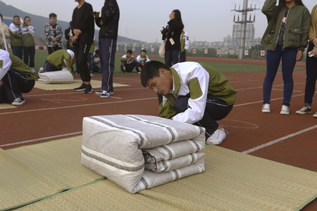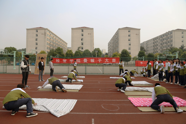 活动采取分轮淘汰制。一共有五组,每组十位同学。每轮比赛三分钟,同学完成即可举手示意。首先,裁判宣读完比赛规则,开始计时的一瞬间第一个小组开始了比赛,参赛选手认真仔细的整理被子,牢记军训期间教官指导的叠被子技巧,践行十九大习近平总书记提出的培养德智体美全面发展的社会主义接班人和建设者。各个小组有条不紊的进行着比赛,比赛场地加油助威的同学更是激情澎湃,展现出当代老员工青春洋溢的风采。随后,评委为同学们打分,并作出了评点。比赛结果为一等奖3名:营销17-1陈卓,财会17-1曲海阳,营销17-2杨力立,二等奖5名:电商17-1赵磊,财会17-3王存全,社区17-1努尔阿地力,财会17-3戴腊子,电商17-1张莹,三等奖7名:财会17-1李亚喃,电商17-1许壮壮,物流17-2张晋福,财会17-1毕研萌,财会17-1刘芷琪,电商17-1余秀,财会17-1李淼。