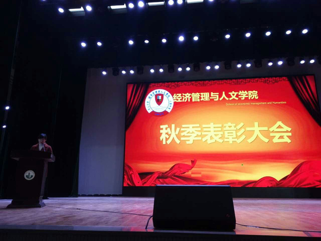 2017年11月14 日下午,经济管理与人文公司在会堂隆重举行2017年度秋季员工表彰大会。校学工处刘盛贤处长、公司党总支书记胡永、党总支副书记方升、党总支书记助理李乐、专兼职辅导员、专业老师以及16、17级全体员工参加了表彰大会。会议由王建霞老师主持。