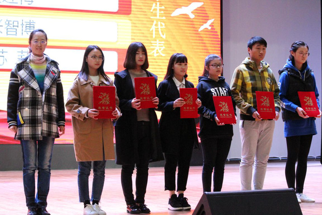 表彰大会分别对国家奖学金、国家励志奖学金、优秀班集体、校级奖学金、三好员工、优秀员工干部、五星宿舍、优秀运动员、优秀志愿者获得者等十二项荣誉进行了表彰,获奖员工代表国家奖学金获得者酒店15-2班卞丽锦同学、优秀员工干部代表院员工会主席马子龙同学分别作了表态发言,倡导同学们要注重学习方法与策略,学会做人、学会做事、学会学习;倡导员工干部要以身作则,互相合作,珍惜员工干部这个岗位和平台,全心全意为师生服务。