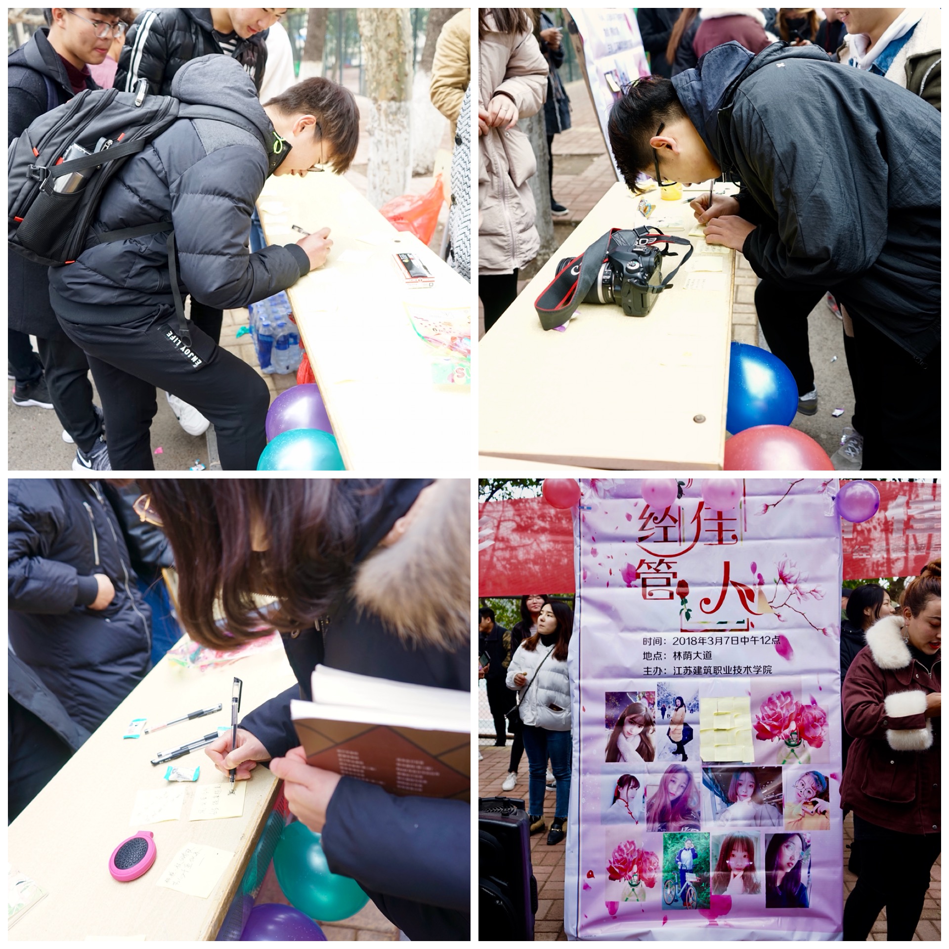活动分为两个部分。第一个是点赞心仪经管“佳人”。活动现场张贴赞美女生的古诗词,并且让参与同学选择自己喜欢的古诗词朗读,在此之后会获得一个星星贴纸,将星星贴纸贴到自己最喜欢的经管佳人上,为自己喜欢的佳人打call!第二个是献歌经管“佳人”。在活动期间由文艺部成员为经管佳人献歌,这个环节为活动增添色彩,营造了轻松愉悦的气氛。此外,文艺部还特意为公司女生们拍摄朗诵视频,以表示对女生们美好的祝福。前来参加活动的同学都满脸微笑,活动场面热闹非凡。