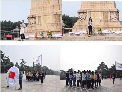 本次扫墓活动由办公室干事刘浩然主持。缅怀先烈,寄托哀思,来到这肃穆的淮塔前,向先烈们传达我们对他们的感激和思念。首先,全体肃立,唱国歌;其次,办公室干事刘芷琪致辞,表达对革命先烈的无比崇敬;最后,默哀三分钟,使他们铭记历史;敬献花圈,更寄托了他们对先烈的哀思。此前,酒店17-3团支部也纷纷来到淮海战役纪念塔,通过瞻仰纪念塔、参观战役纪念馆来详细了解淮海战役,并以此来寄托对革命烈士的哀思。