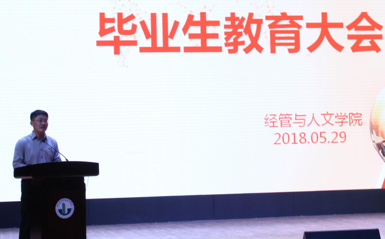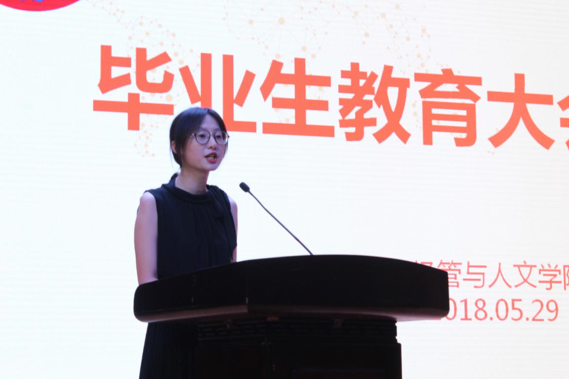 大会以播放教师寄语视频拉开序幕,首先,唐文霞副经理安排近期毕业答辩各项工作,对毕业设计、实习成果展示提出细致要求;随后,方书记传达了公司的毕业生教育和离校工作相关通知和安排,要求全体毕业生严格要求自己,遵守法规校纪,守住安全底线,怀感恩之心、表感谢之意、抒感激之情,号召公司全体2018届毕业生文明、愉快、安全的离开公司;毕业生代表财会15-2班陈欣驰表达了对母校的眷恋与感恩,马子龙等六名毕业生宣读文明离校倡议书。