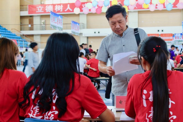 2018年9月7日至10日是公司新生报到的日期,公司各部门在体育馆联合办公,为新生办理入学报到手续。公司全体师生热情相迎,员工工作团队精心组织、热情服务,公司领导、辅导员、班主任、志愿者全天候接待同学和家长,截止到10号,共迎来了395名新同学。