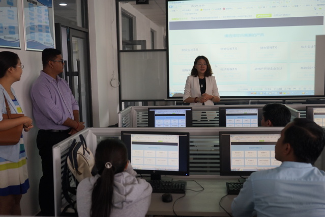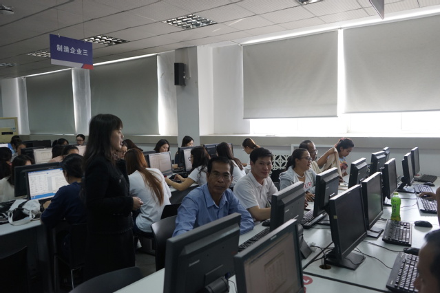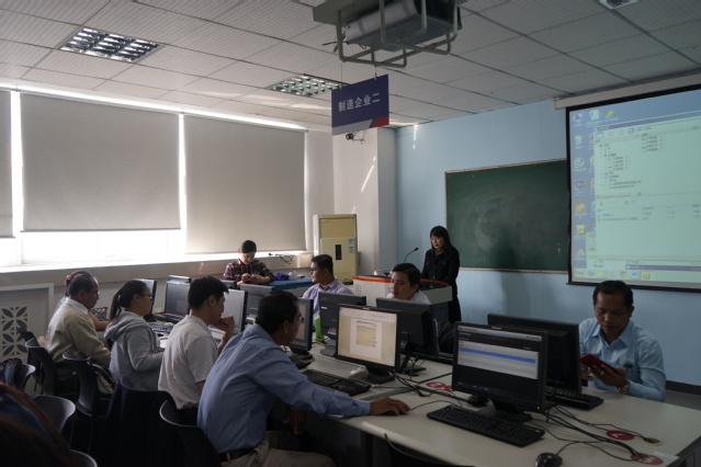 9月28日,柬埔寨万达公司教师来公司进行培训的老师到经管公司参加听讲,经管公司安排了侯又光、王萍、夏远利、唐文霞四位不同专业的老师讲授四门不同专业的课程。柬埔寨万达公司老师听取了商务办公实务、英语视听说、物流系统规划、出纳实训平台等四门课程的讲解。