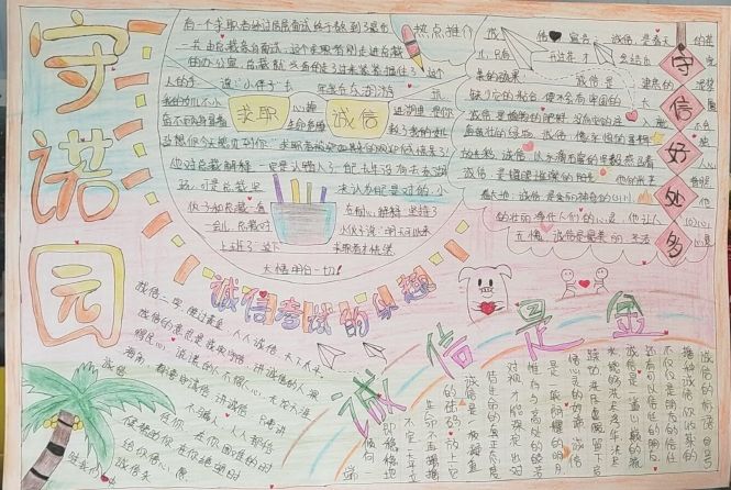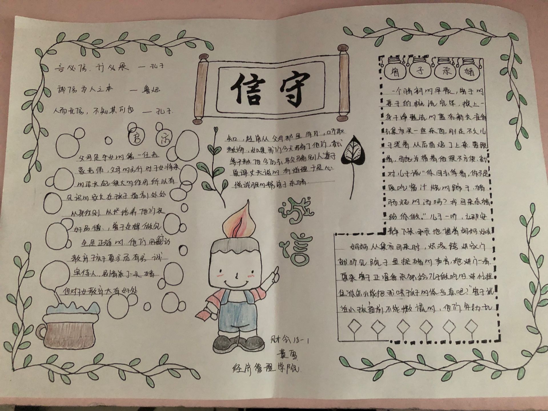 设计作品涵盖手抄报、书法、海报等形式,内容积极向上,画面生动形象,充分体现了当代青年强烈的使命感与责任感。此次活动的成功开展,不仅培养了同学的动手制作能力,同时也培养了同学们要诚信做人、诚信做事的品质。