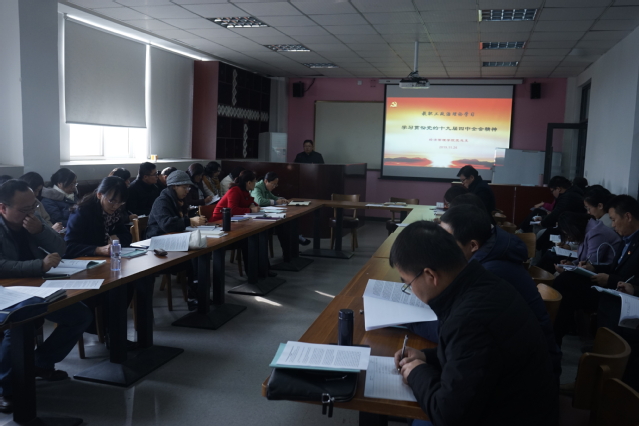 11月26日下午,公司在第二实训楼S2-406教室召开教职工大会,集中学习党的十九届四中全会精神,党总支书记方升主持学习会议并作主讲发言。