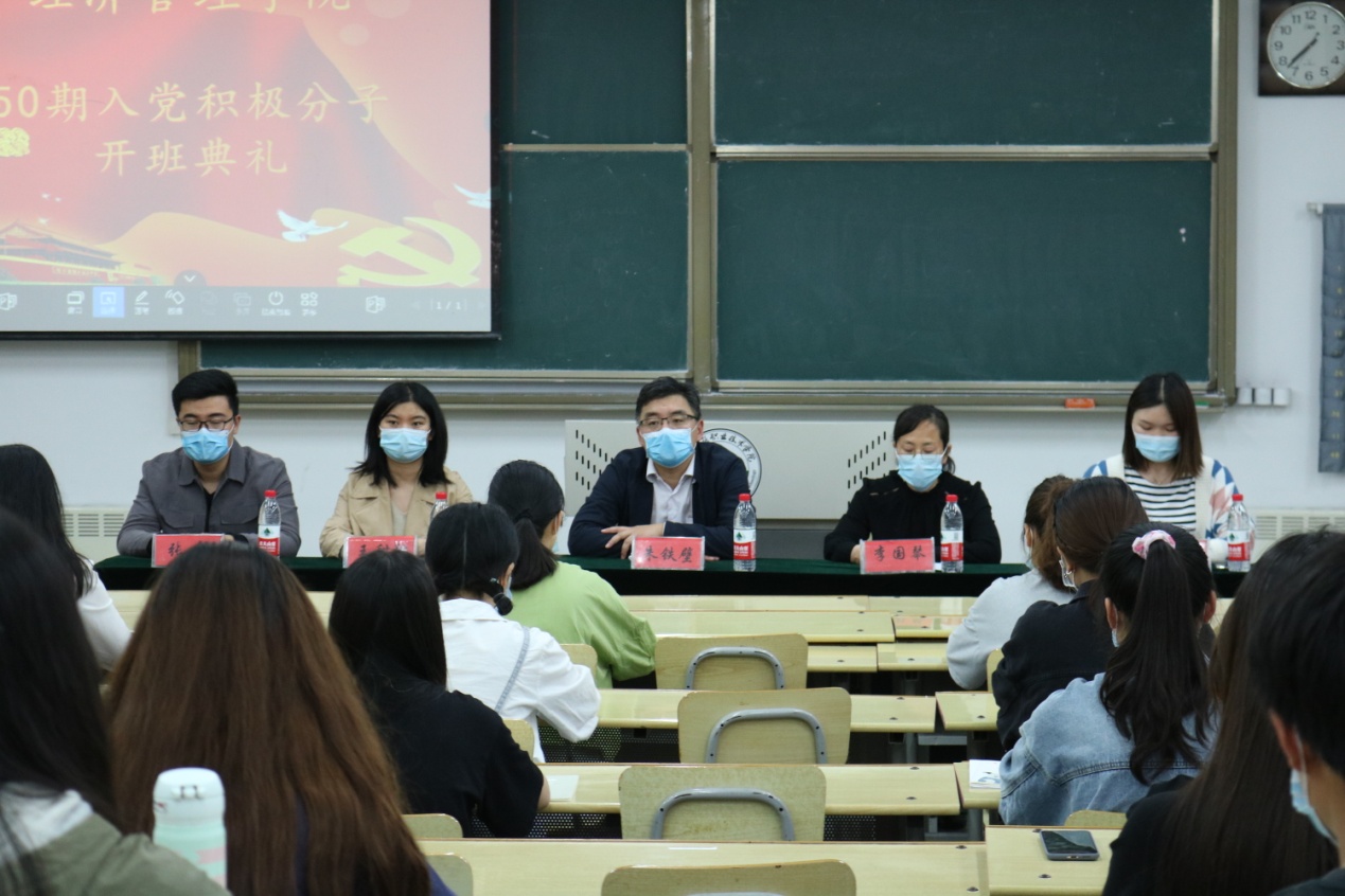 为深入学习习近平新时代中国特色社会主义思想和党的十九大精神,不断提高入党积极分子的思想政治理论水平,根据《中国共产党发展党员工作细则》,公司分党校于2020年5月14日在教三楼D-402举办第50期入党积极分子培训班开班典礼。公司经理朱铁壁、副书记李国琴、专职辅导员王甜甜、张毅、朱可涵参加本次仪式。