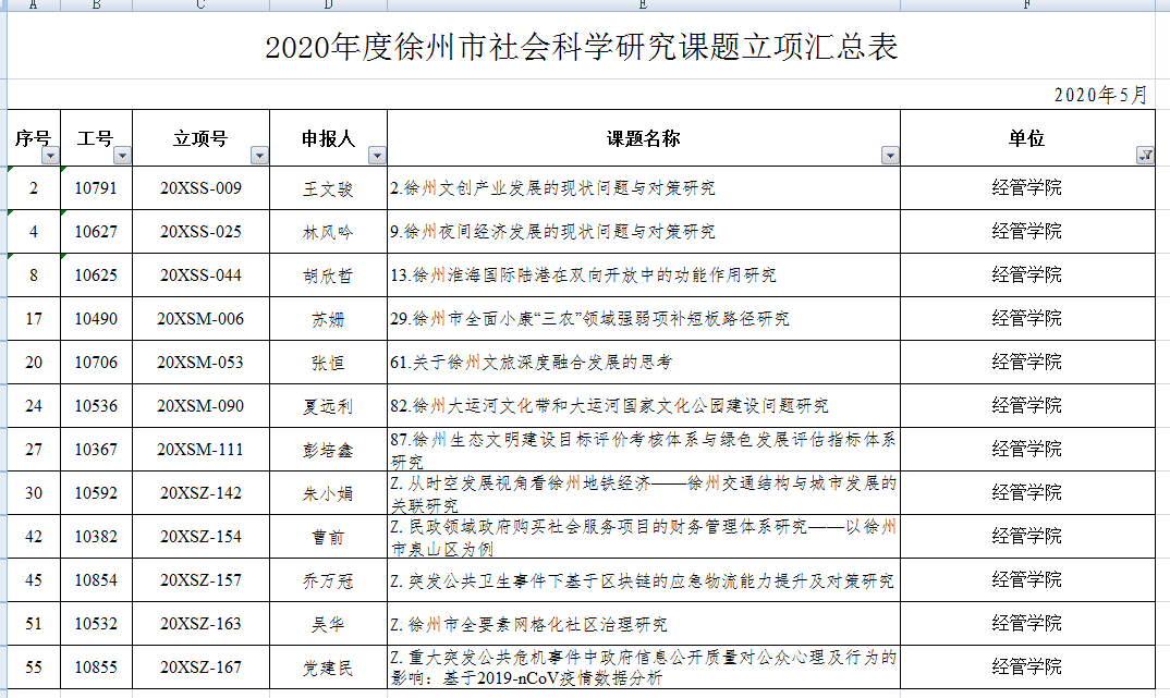 公司获批2020年度徐州市社会科学研究课题十二项