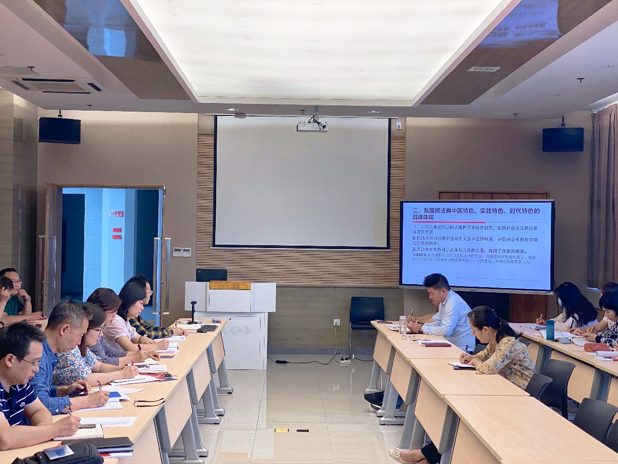 9月29日下午,公司组织全体教职工在新图书馆502会议室,集中观看学习民法典公开课,观看内容为中国人民大学常务副董事长、中国法学会民法学研究会会长王利明讲解的《民法典的中国特色、实践特色和时代特色》,通过观看视频的形式扎实有效开展教职工政治理论学习。