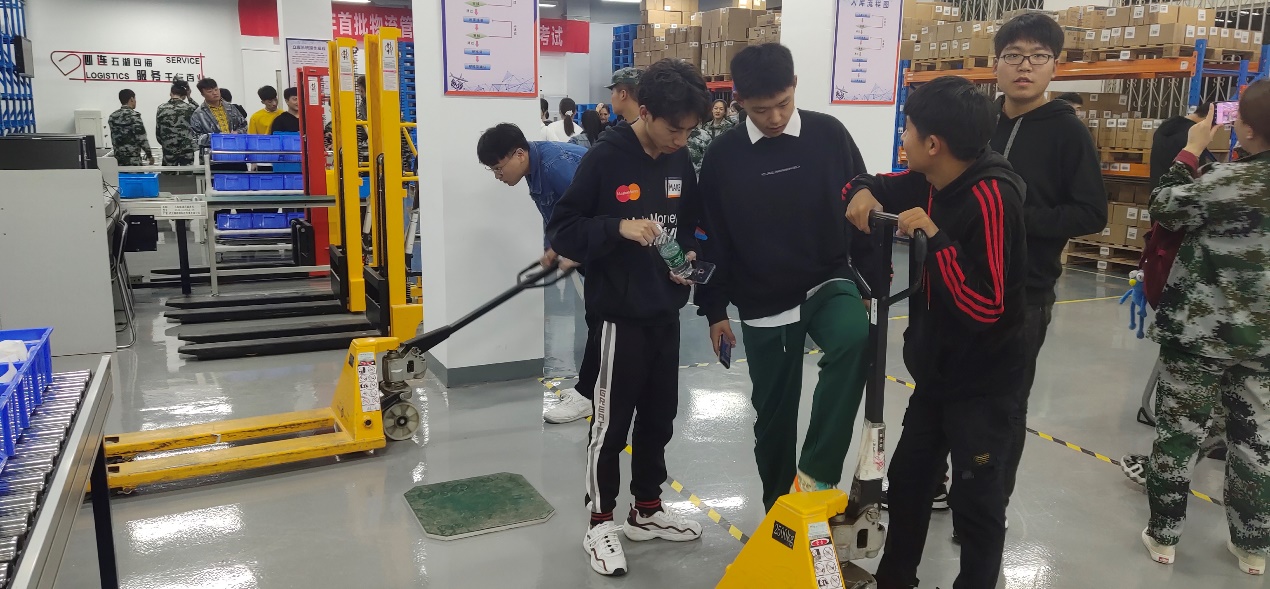在乔老师的讲座过后,老师带领这同学们对物流实训室进行了参观。让同学们对以后的工作地点与使用的工具地牛、堆高机等进行了教学与实践。教与实践相结合,推动员工对未来学习的高涨动力与工具的熟练操作。