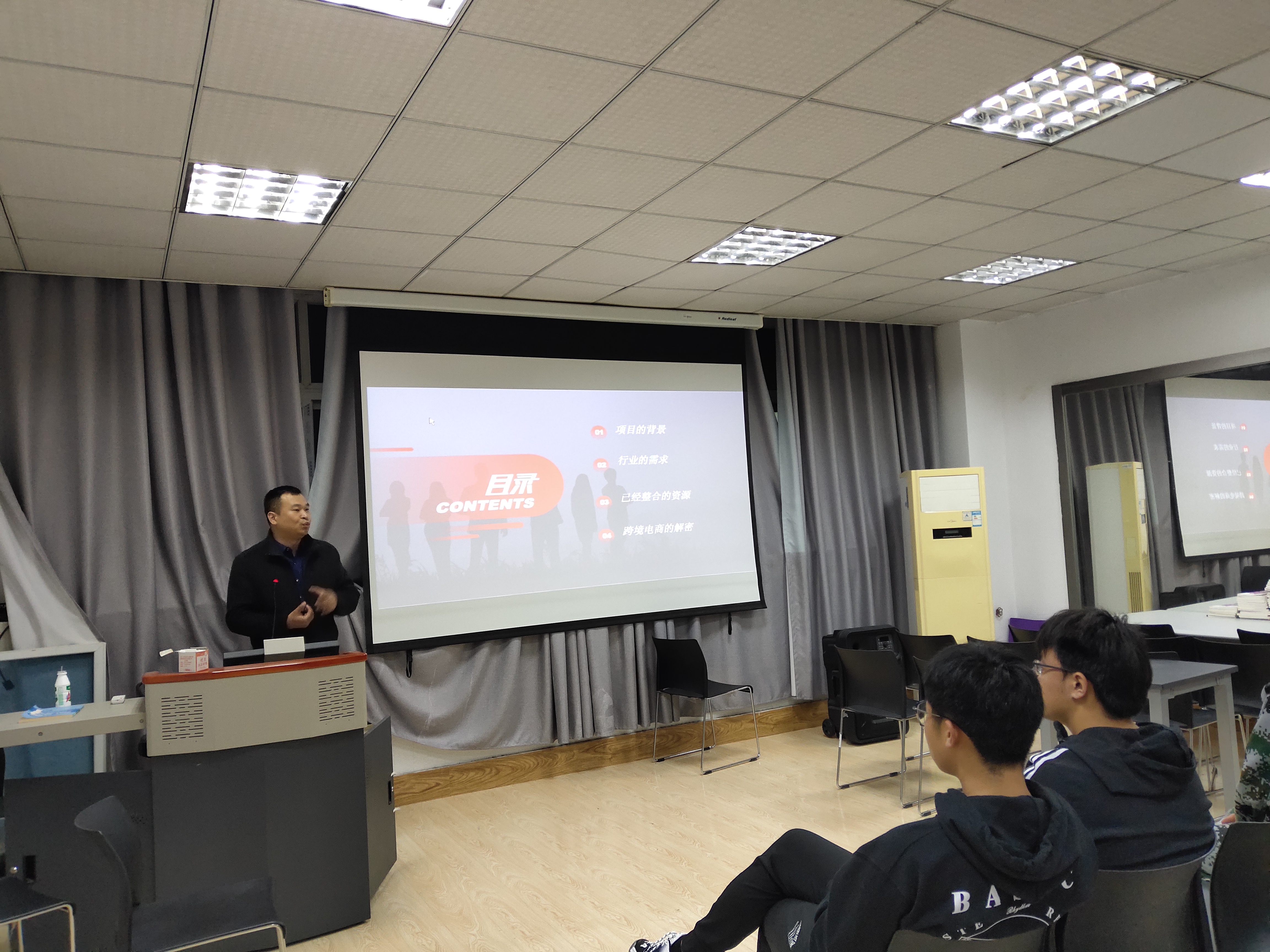 第二场讲座聘请徐州行知网络科技有限公司顾总做了跨境电商未来发展趋势的讲座,顾总从当代老员工学习和生活的现状谈起,对电子商务的过去、现在和未来理清了脉络,言简意赅的主题、内涵丰富的演讲、松弛有度的节奏、幽默善言的风格使这场讲座成为点燃同学们学习激情的火种,尤其是贯穿始终的创新创业思维,突出跨境电商作为外向型电商发展趋势和重点,让同学们对这电商专业有进一步的认识。
