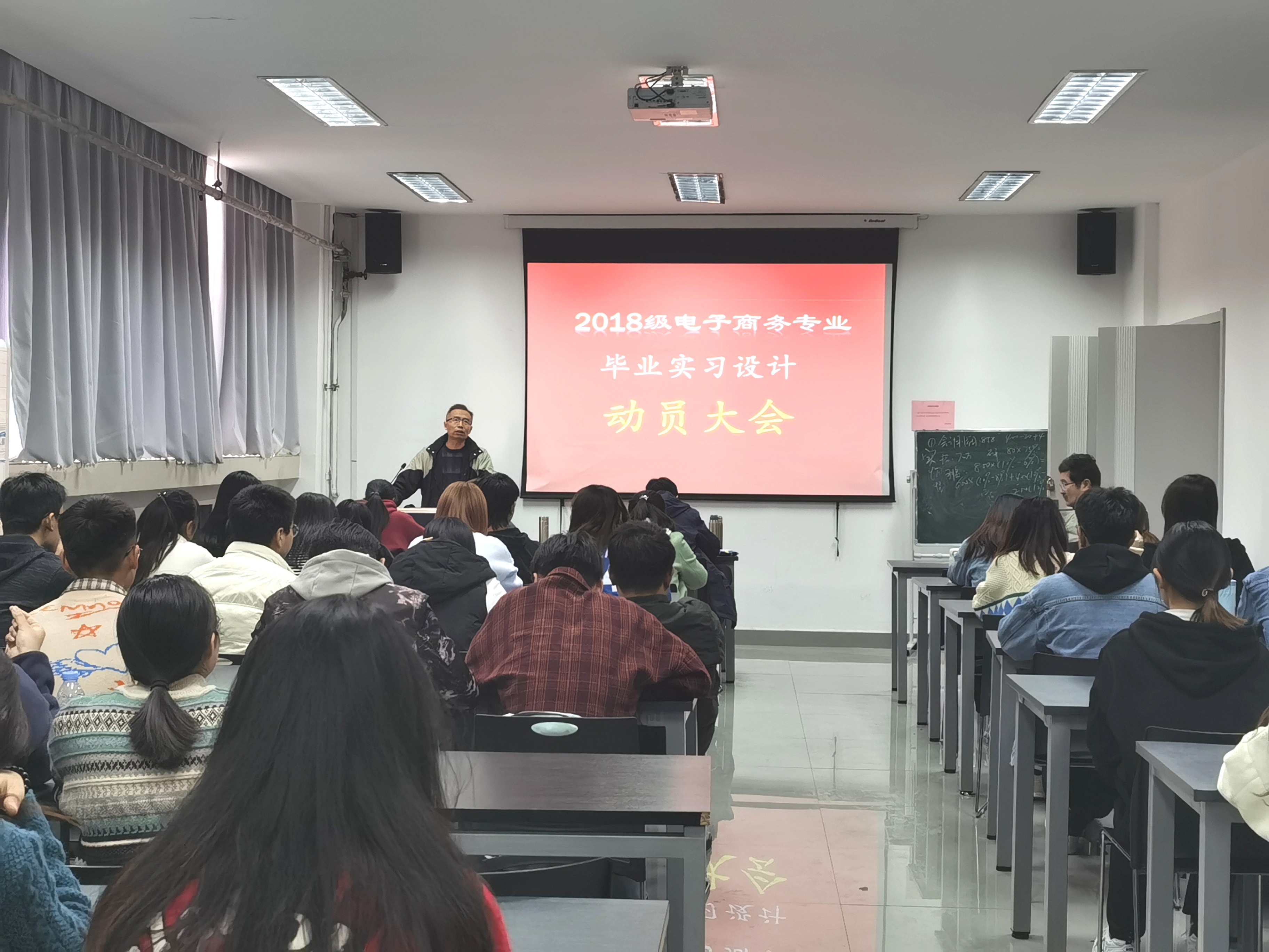 11月10日下午4点,2018级电子商务专业毕业实习设计动员大会在第二实训楼603举行,电子商务专业全体老师和2018级员工共同参与本次动员大会。