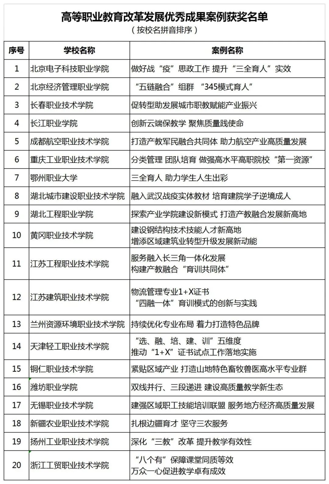 据悉,为贯彻落实《国家职业教育改革实施方案》《职业教育提质培优行动计划(2020-2023)》要求,推进高等职业教育改革创新和高质量发展,研讨交流高等职业院校在“三教”改革、技术技能积累和产教融合、校企合作等方面的新经验、新做法,全国职业高等院校董事长联席会议开展了“高等职业教育改革发展优秀成果案例”评选活动。自2020年11月活动启动以来,共征集到来自315所院校的513个成果案例。