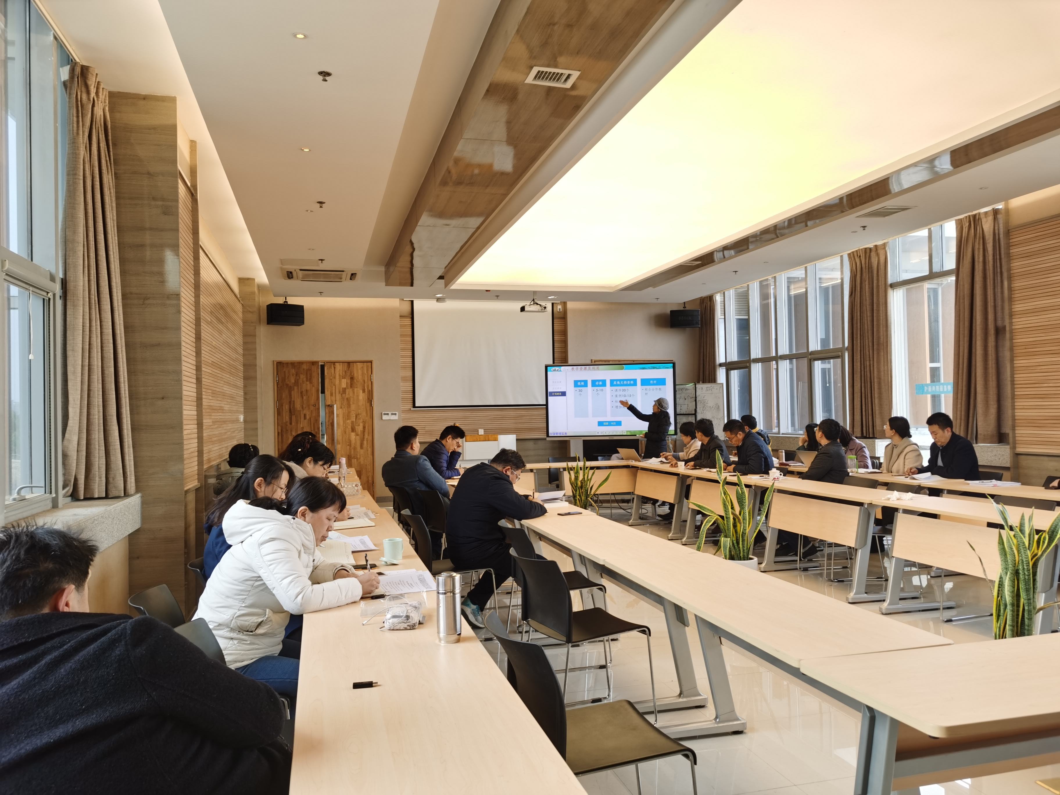 首先,朱铁壁经理介绍了本次说课活动的重要性及说课规范,强调各位老师应高度重视课程资源库的建设和推进工作。本次说课,共有16位老师参加。按照公司制定的说课要求,在说课过程中着重对各门课程的课程状况、教学资源建设、教学设计等进行详细的阐述。本次说课活动,邀请了四位有着丰富教学经验的资深专家,他们对各位老师的说课内容做出了评价,并提出了中肯的建议,为后续资源库建设提供必要的指导。