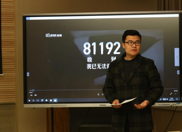 “海空卫士”王伟烈士牺牲20周年之际,张毅老师首先介绍了他的生平事迹,随后大家集中观看纪录片《你若记得81192,他便不悔》。