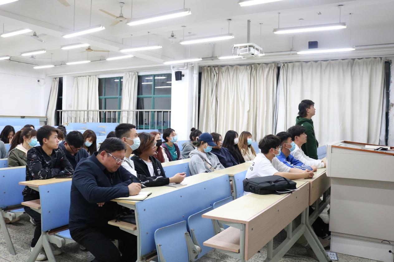 会后,专兼职辅导员到班级召开班会课,公司领导班子成员走进教室听班会课。
