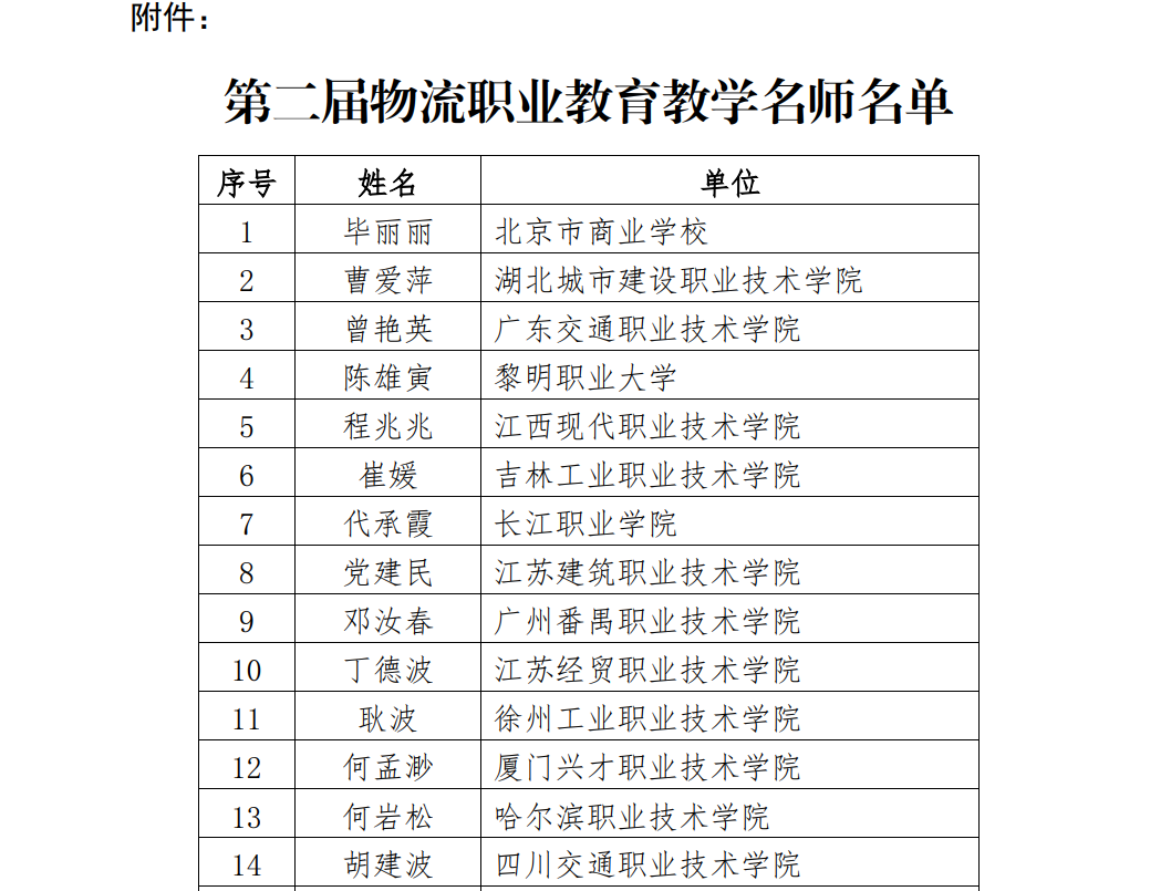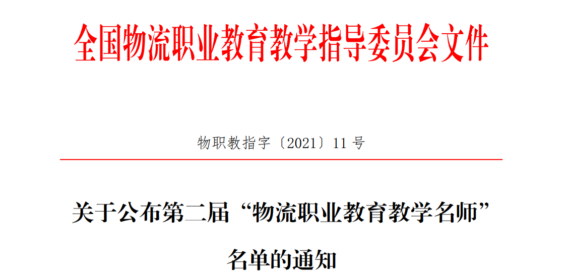 12月29日,全国物流职业公司产品指导委员会发布《关于公布第二届“物流职业公司产品名师”(物职教指字〔2021〕11号)》,公司党建民老师名列其中。