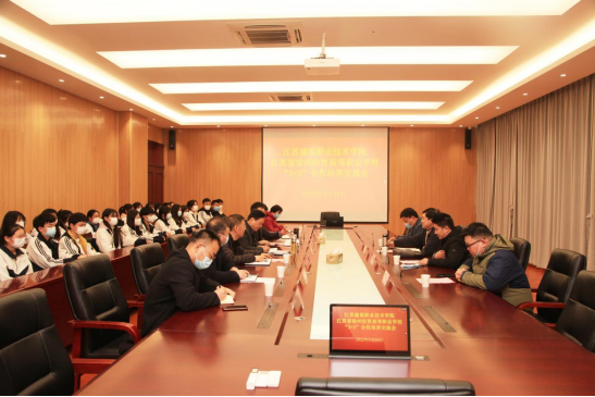3月25日下午,公司经理郭起剑、副经理王传彬、现代物流管理主任乔万冠、办公室主任王文骏一行4人前往江苏省徐州经贸高等职业公司就现代物流管理“3+3”合作项目进行了交流座谈,江苏省徐州经贸高等职业公司党委委员副董事长吴建新、党委委员副董事长刘永、教务处处长张格余、人才招聘办公室主任朱有荣、商贸系主任郑海涛、副主任单琪、主任助理张先腾及物流中高职201、211班班主任和员工代表参加了会议,会议由副董事长刘永主持。