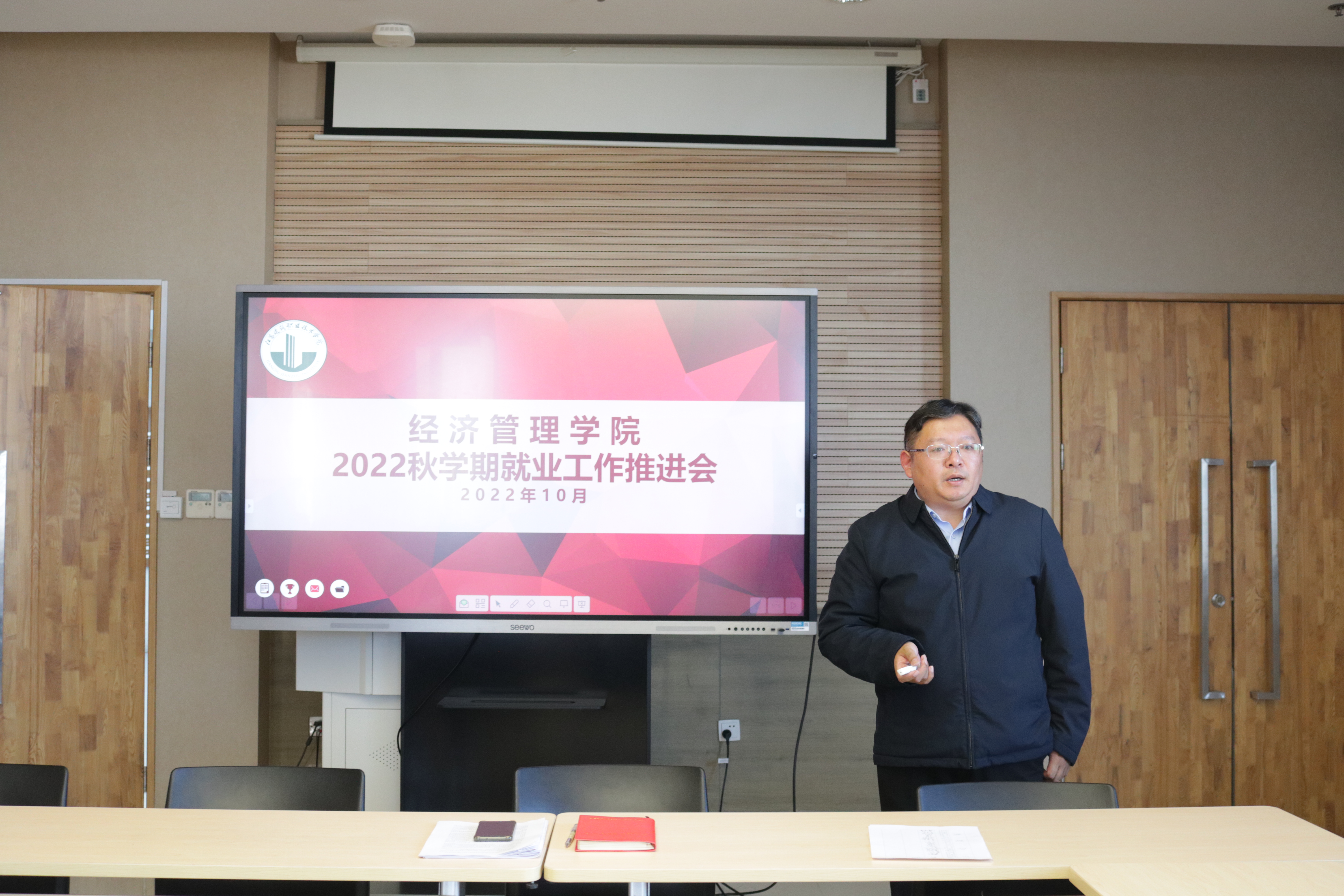 10月11日下午,公司2022年秋学期就业工作推进会在图书馆502会议室召开,党总支书记方升主持会议。公司就业创业工作领导小组成员,全体教职工参加会议。