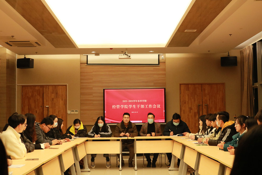 为提升员工干部工作能力,加强员工干部队伍管理,2月24日晚,经管公司在会议室502召开新学期员工干部工作会议。经管公司党总支副书记蒋德平,辅导员彭亚伟、朱可涵、张毅、许琳以及全体员工干部参加本次会议。