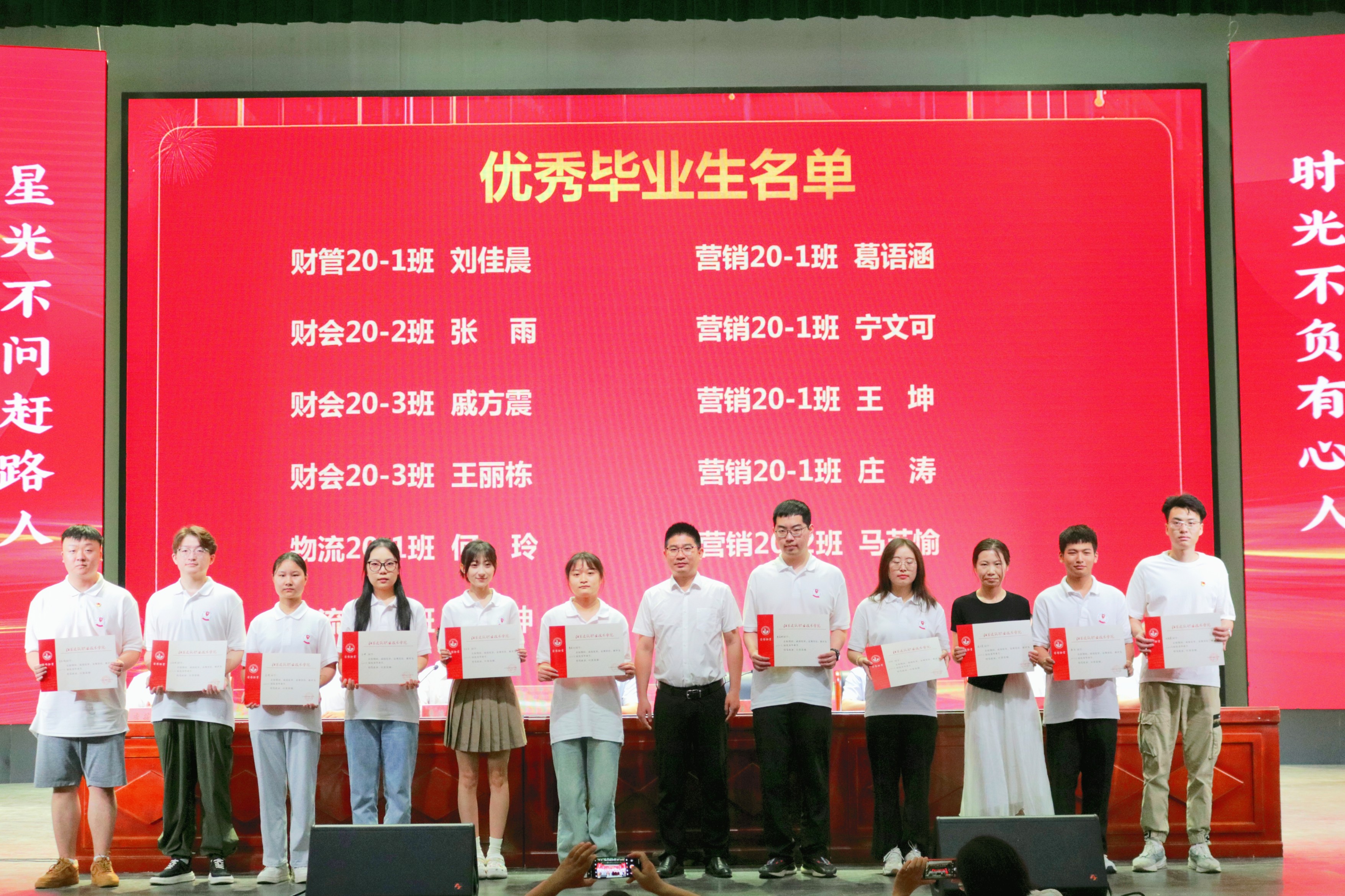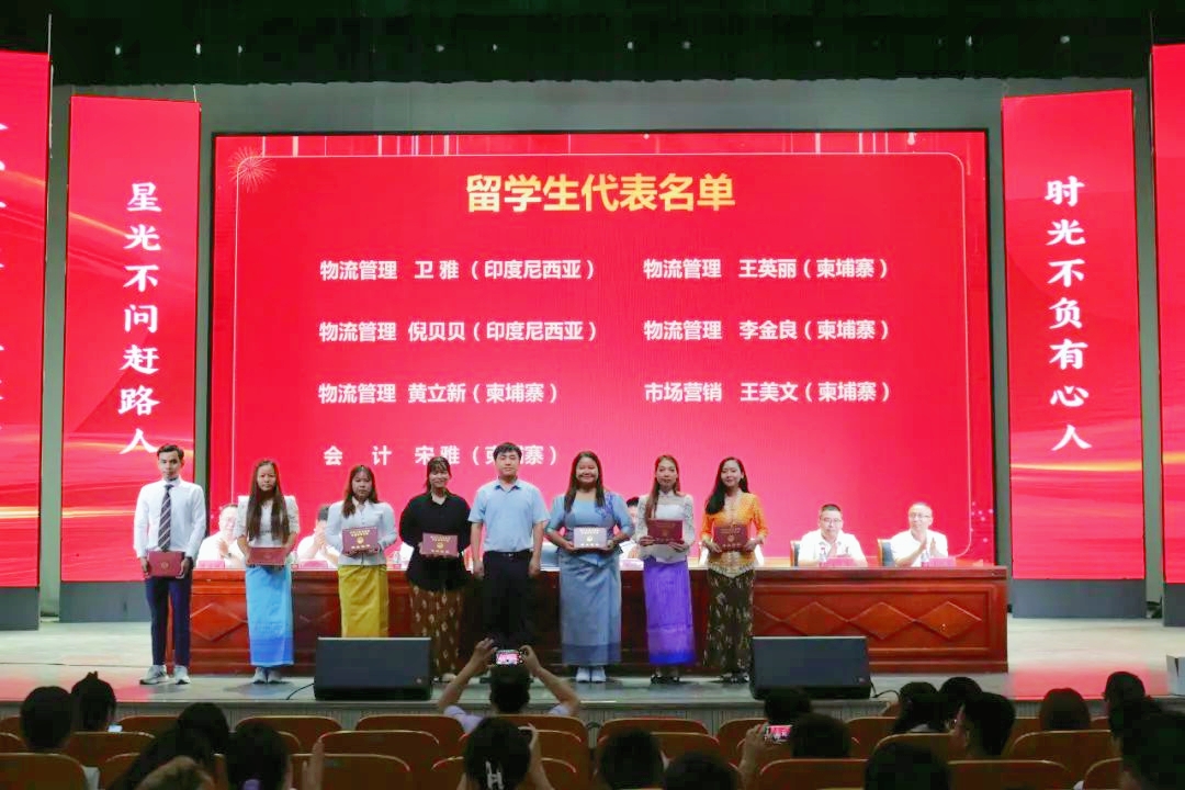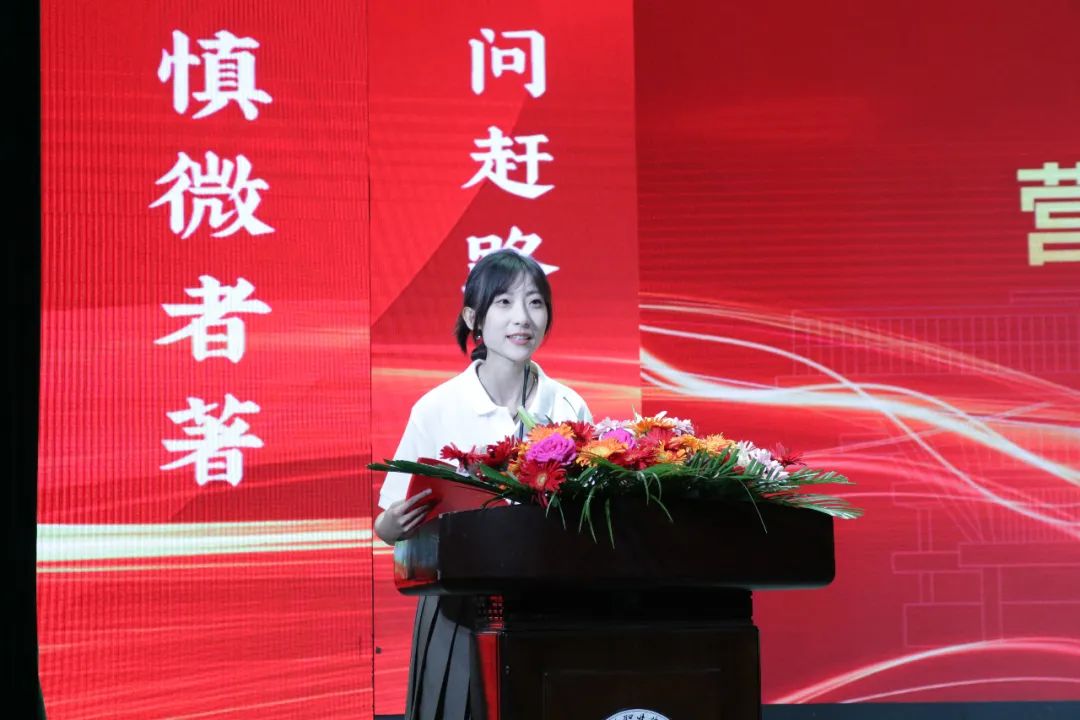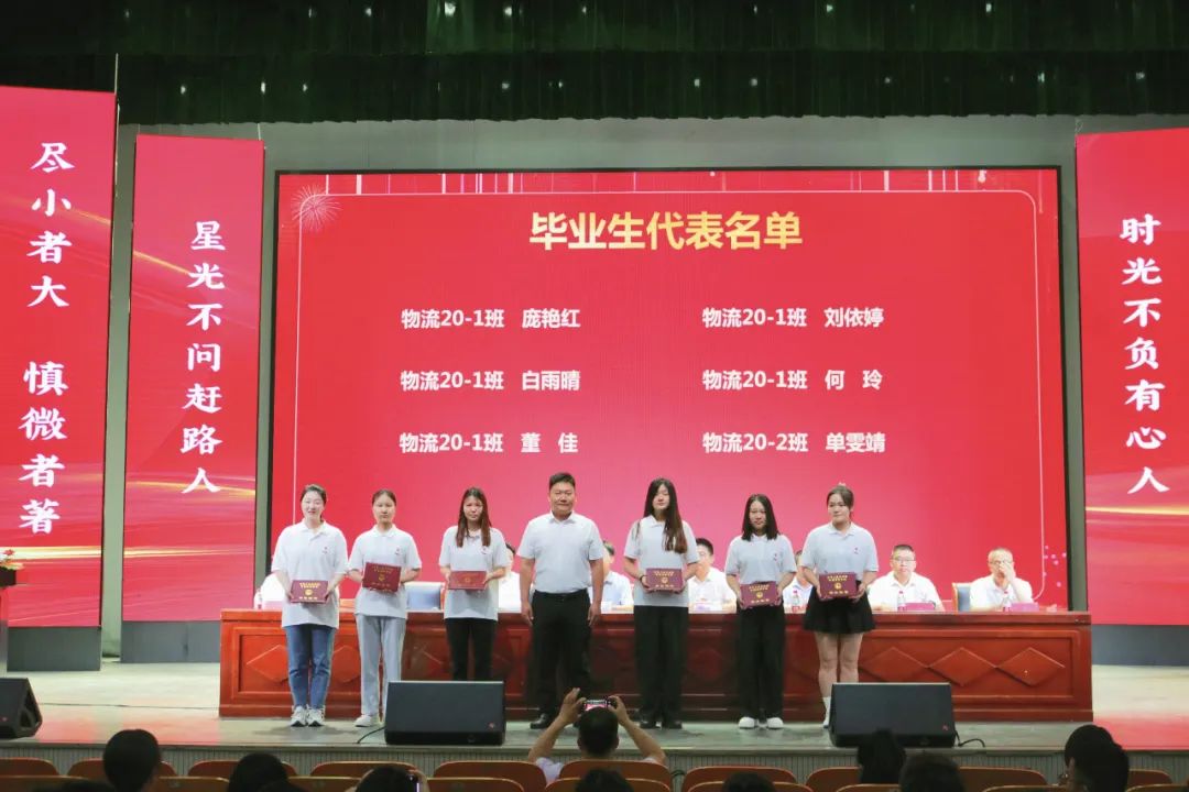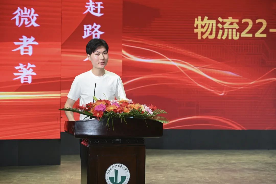 物流22-1班夏楚尧同学作为在校生代表在发言中表达了对师兄师姐的感谢和不舍,祝愿师兄师姐前程似锦,珍重为安。