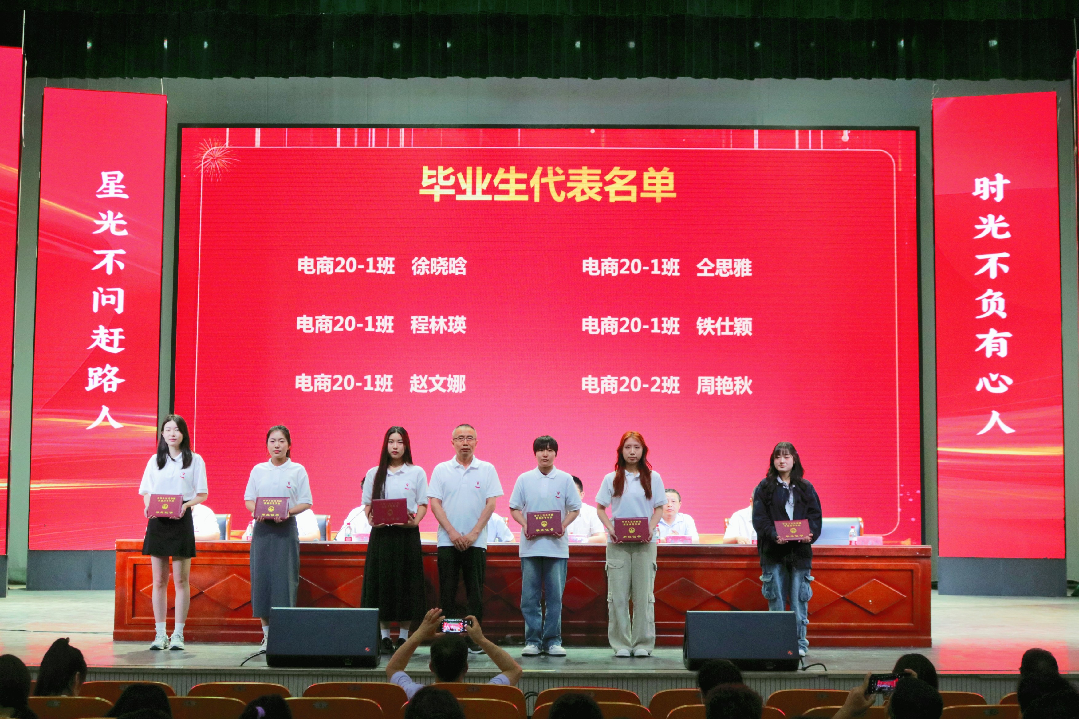 公司领导、各专业主任分别为毕业生代表、职工代表、优秀毕业生颁发证书。