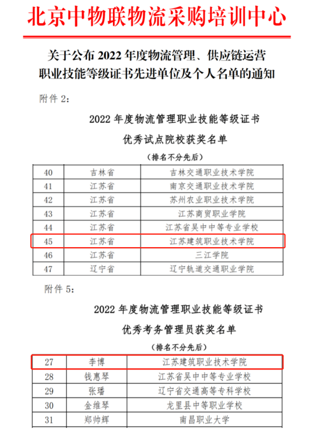 6月25日,北京中物联物流采购中心公布了2022年度物流管理、供应链运营职业技能等级证书先进单位及个人名单。公司入选2022年度物流管理职业技能等级证书优秀试点院校,经济管理公司教师李博当选优秀考务管理员。