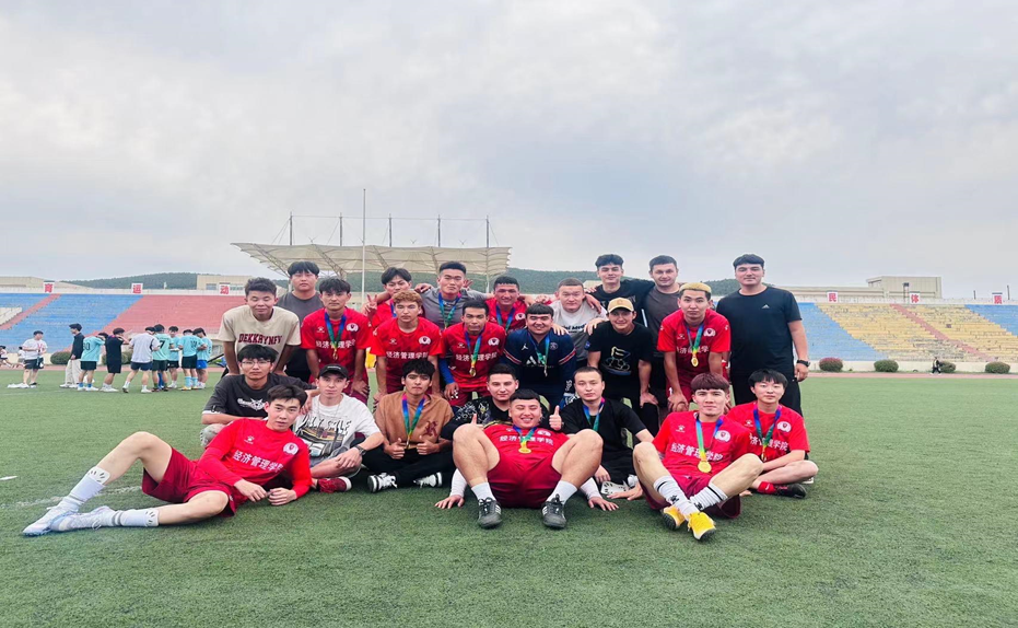 总决赛结束时已经临近傍晚,夕阳的余晖洒在天边,每一位队员胜利的喜悦都洋溢在脸上,大家把汗水挥洒在了热爱的绿茵场上。从初入足球队到与队友们相识,然后在场上的一起并肩作战,直至最后拿下的胜利,有着很深的感触。公司有不少来自新疆的少数民族同学,大家都有共同的爱好,在彼此相处的时光里,能够深刻感受同学们对足球的那种偏执的热爱。队员们尽管来自不同的民族,说着不同的方言,但因为足球这项运动走到了一起,为了同一个目标而全力以赴,正是有着和谐的氛围,明确的目标,从而使得经管足球队逐渐走向强大。