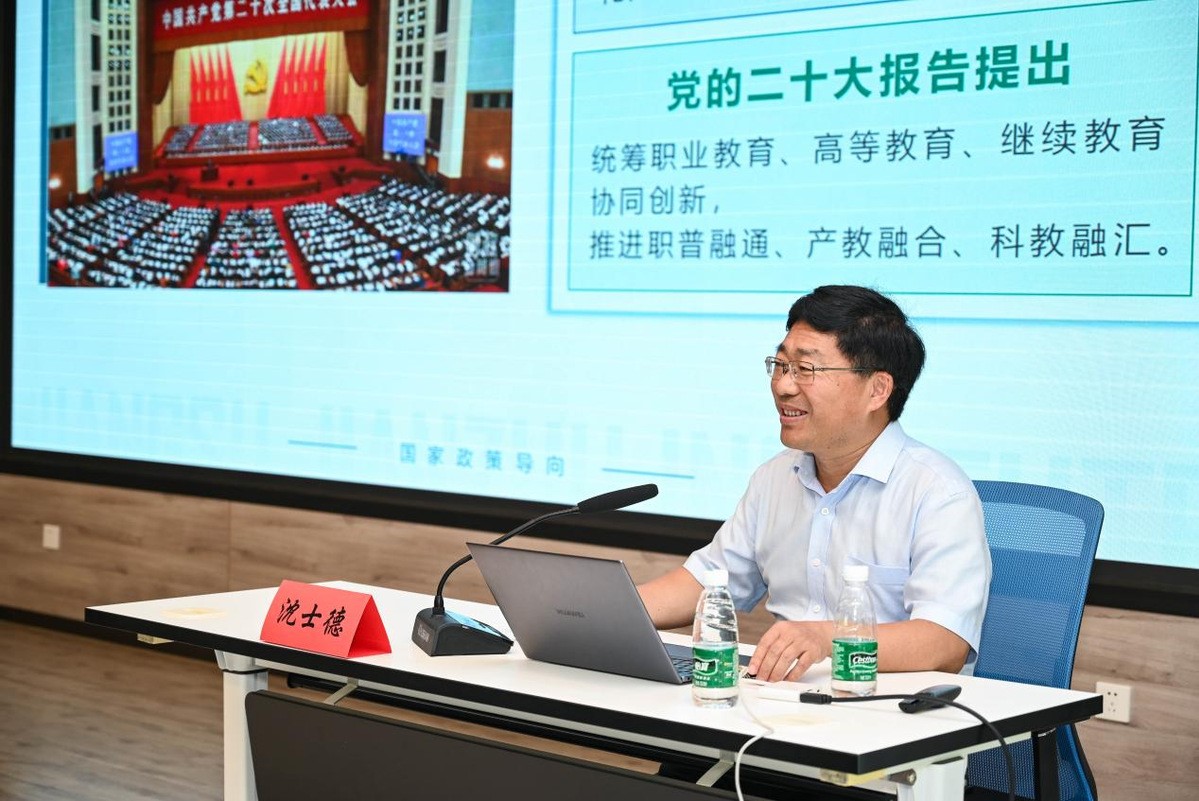 开班仪式后,沈士德以《深化三项改革,做实产教融合,着力培养建筑行业高素质人才》为题作专题讲座。