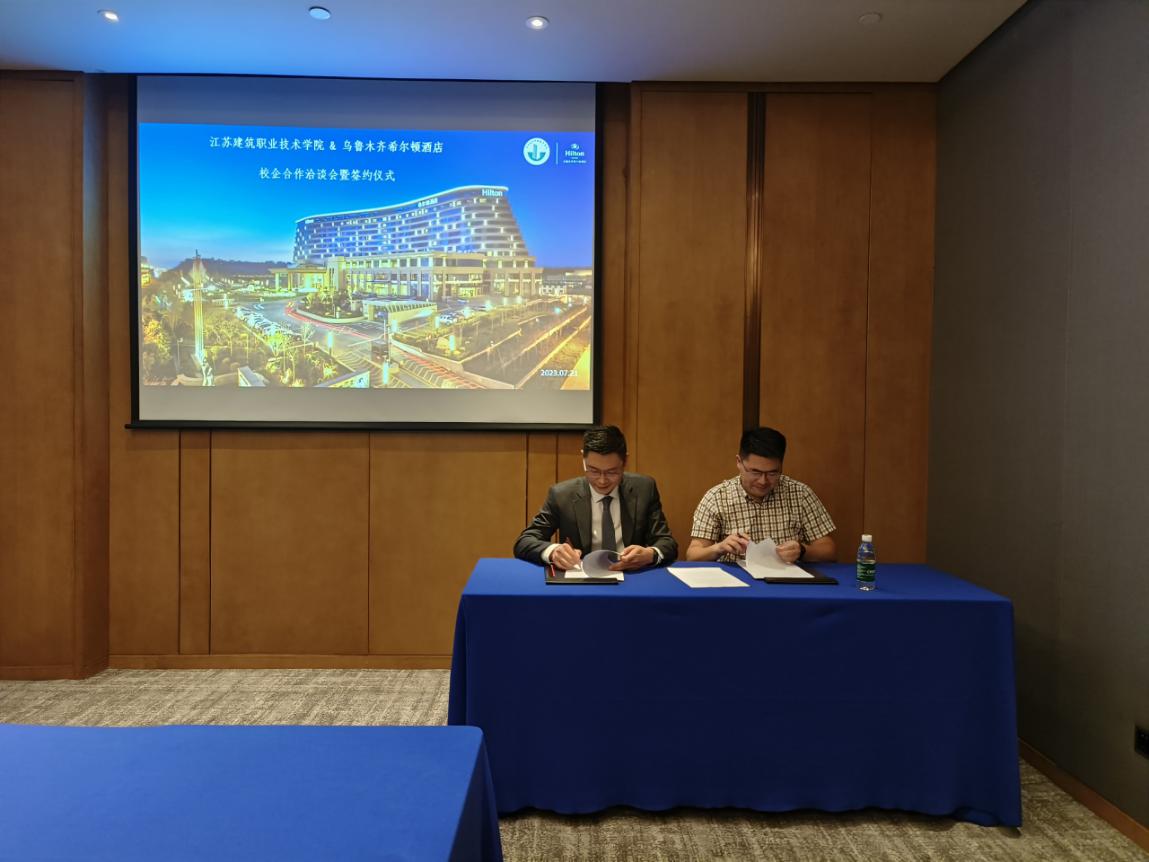 在乌鲁木齐希尔顿酒店,公司招聘经理郭安娜详细介绍了酒店发展现状、当前市场形势、用人需求等情况,提出了今后继续加强校企合作、人才培养的意见和建议。蒋德平介绍了公司、公司的历史沿革和概况,以及公司的团队队伍、人才培养情况,对酒店在新疆籍员工实习就业方面的支持表示感谢。座谈会上,双方就员工实习、就业等问题深入交流,随后蒋德平与希尔顿酒店总经理陈太波正式签订校企合作协议,希望与酒店做实做深校企合作,在人才联合培养等方面持续发力,携手打造校企合作新标杆,为行业发展提供强有力支撑,实现共赢。