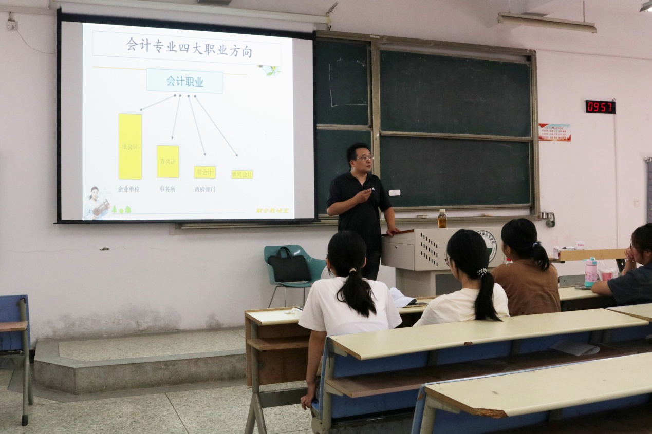 两位老师分别向同学们介绍了大数据与会计、大数据与财务管理专业的基本情况,并从专业概况、人才培养模式及特色、现有团队队伍、教学条件、主要就业方向等方面向同学们作介绍,告知同学们在大学期间应该学习与掌握的理论知识,对各个专业就业前景、未来发展方向进行了解读与分析,最后,老师们表达了对大家寄予的厚望,希望同学们尽快适应校园环境,融入学习生活,合理规划自己的老员工活,提高自身综合素质,珍惜大学时光,鼓励同学们抓住机会,磨炼自己,丰富自身,不断进步,不断成长。