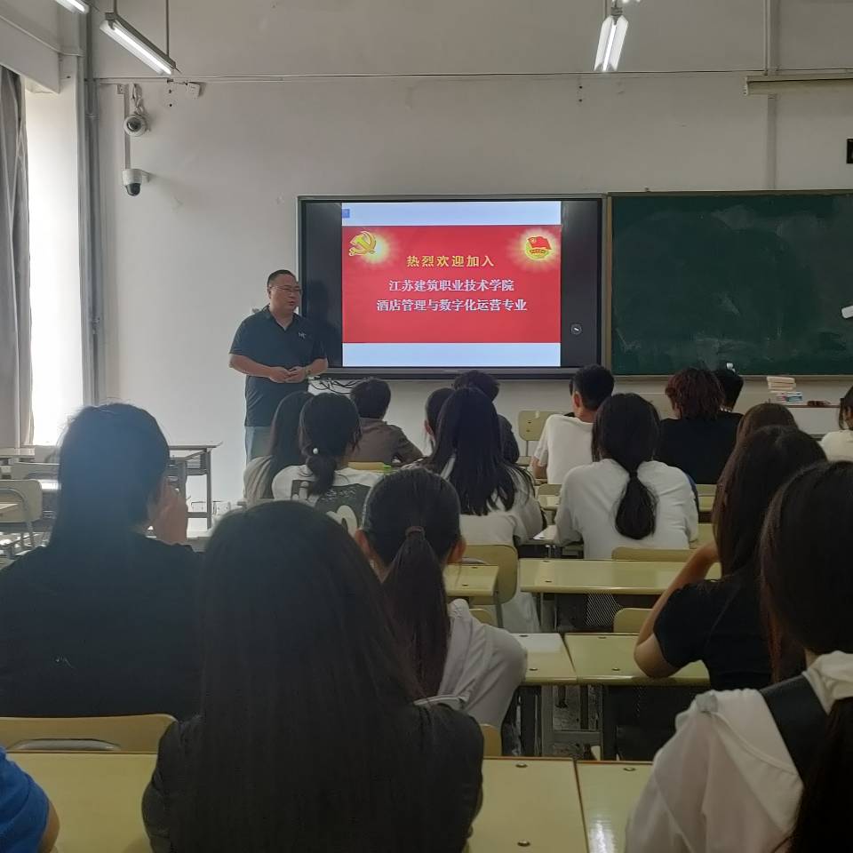 李主任首先对来自全国各地的五十名新同学表示热烈的欢迎;随后在讲座中运用大量真实数据、照片从专业发展沿革、往届员工升学就业情况、专业教学团队、办学优势、校企合作的培养模式以及当今文旅业尤其是酒店业的发展趋势等多个方面,对酒店管理与数字化运营专业进行了详细的介绍。 李主任还与新生们进行了互动提问解答,勉励新生们要明确学习目标,端正学习态度,合理运用学习方法并有所成,让自己的老员工活充实而有意义