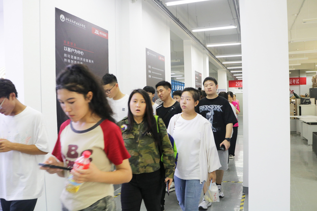 参观前,王传彬副经理介绍了公司相关情况,他鼓励同学们树立技能报国的理想信念,兼具朝气蓬勃的精神风貌和顽强拼搏的意志品质,他勉励同学们增强技能成才的信息和决心,潜心钻研,勇攀技能高峰。师生们首先参观了京东校园数字商务实训中心。电子商务专业教研室杜春梅老师介绍了公司与京东集团开展校企合作、产教融合的基本情况,带领大家了解了实训中心的运营管理状况。中心不仅是实体销售的代表,更为同学们提供了贴近生活的实地体验机会,让他们了解了丰富的商品信息和市场动态,也让同学们并对京东数字商务营销模式有了更深刻的了解。
