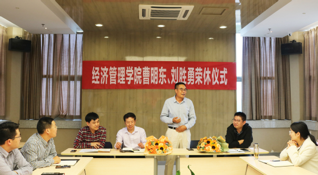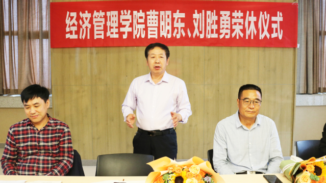刘胜勇从自己从教的生涯谈起,回顾了自己在不同阶段中的工作经历,讲述了自己在教学过程遇到的点点滴滴,以及陪伴员工成长的历程;曹明东围绕公司、职业、员工、健康四个方面告诉与会教师要热爱工作、热爱生活,要把员工当成最大的财富,同时以经管公司的发展历程为主线,回顾他在教学、管理等方面的工作经历。两位教师满怀深情的回忆了无怨无悔的教育生涯,表达了他们对教育事业的热爱、对同事们的不舍和对公司的感谢及对公司发展的殷切期望。并表示退休后不忘初心使命,继续为公司、公司的建设和发展建言献策。