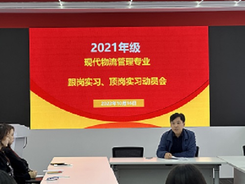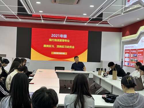 2023年10月16日下午,现代物流管理专业在京东教室召开2021级员工跟岗实习、顶岗实习动员会,公司书记郭起剑,现代物流管理专业全体指导教师以及21级全体物流管理专业员工参加大会。