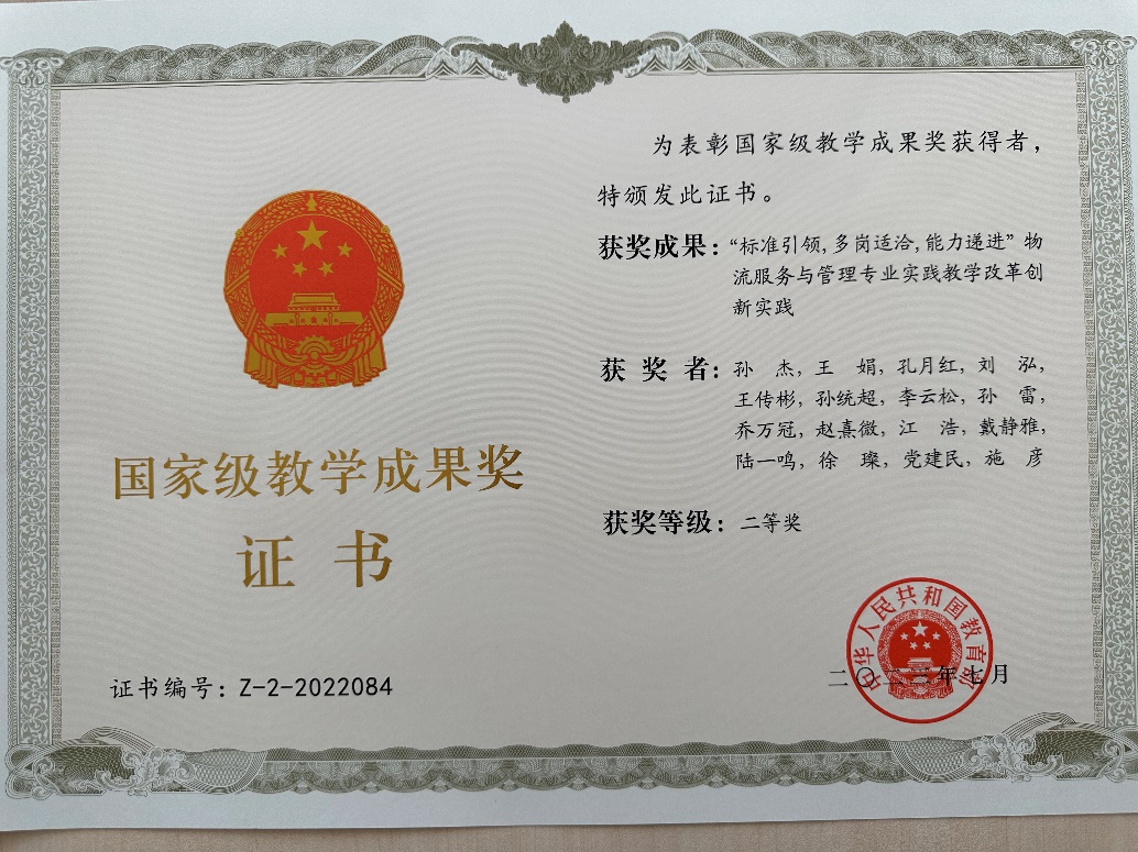 近日,国家教育部公布了关于批准2022年国家级教学成果奖获奖项目的决定。公司作为参与单位,王传彬副经理,乔万冠老师,党建民老师共同参与完成的《“标准引领,多岗适洽,能力递进”物流服务与管理专业实践教学改革创新实践》项目荣获2022年职业教育国家级教学成果二等奖。这是公司自成立以来荣获的教学类最高奖项,实现了物流管理专业在实践教学改革的新突破。