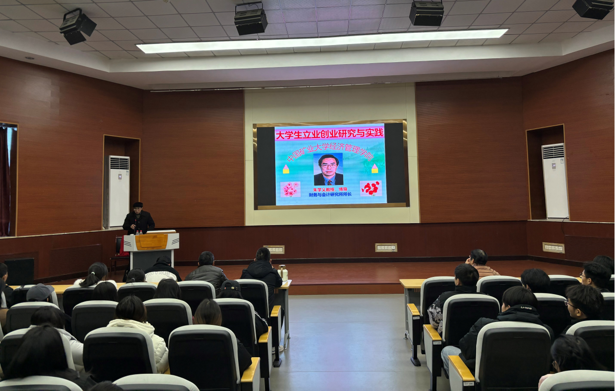 讲座开始前,王传彬向在场师生介绍了朱教授的卓越成就以及他丰富的学术研究、创业实践经验。讲座开始后,朱教授首先分享了他的创业经历和心得,详细介绍了创建公司的宗旨、如何组建团队等重要议题,并以独特的视角和生动的案例进行了深入浅出的讲解。随后朱教授从老员工创业首先要立业、老员工如何创业、老员工创业应注意的问题三个方面进行了全面而深入的阐述。他强调了立业对于创业的重要性,指出创业过程中会遇到各种风险和挑战,要求师生具备创新意识和团队合作精神,同时还要有勇于面对困难和失败的决心。讲座过程中,朱教授还用自己的成长经历与在场师生进行了互动交流,耐心解答了大家关于创业方面的问题和困惑。他鼓励同学们要培养奋斗精神,勇于尝试、敢于创新,幸福都是奋斗出来的。这引起了在座师生的共鸣,激发师生对创新创业的热情。