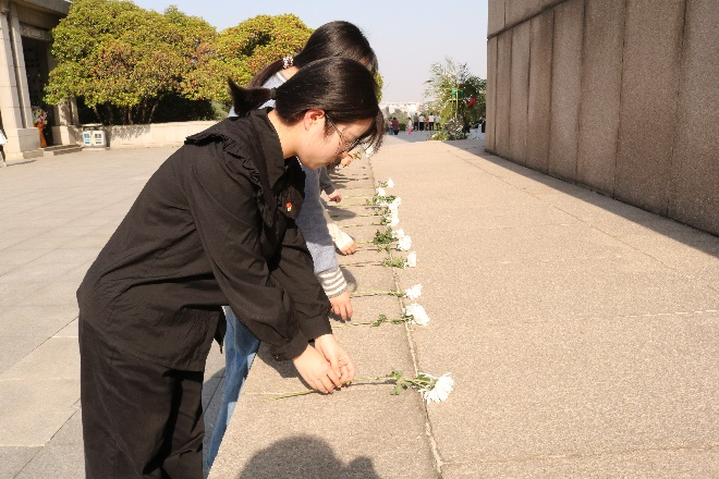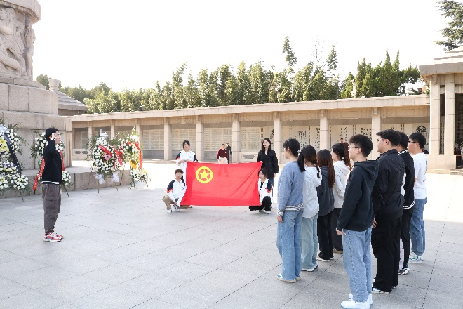 在庄严肃穆的氛围中,同学们怀着无比敬仰的心情向淮海战役烈士纪念塔献花并深情鞠躬。随后,同学们肃立在塔前默哀三分钟,表达对革命先烈的沉痛哀悼和深切思念。接下来,全体团学干部整齐列队,在员工会主席夏楚尧同学们带领团重温入团誓词。最后,同学们绕纪念塔一周,深情瞻仰烈士纪念塔,学习淮海战役的历史背景,追忆革命先烈的英雄事迹,深切表达对革命先烈的无限敬仰和追思之情,表达争做时代新人、建设伟大祖国的坚定信念。
