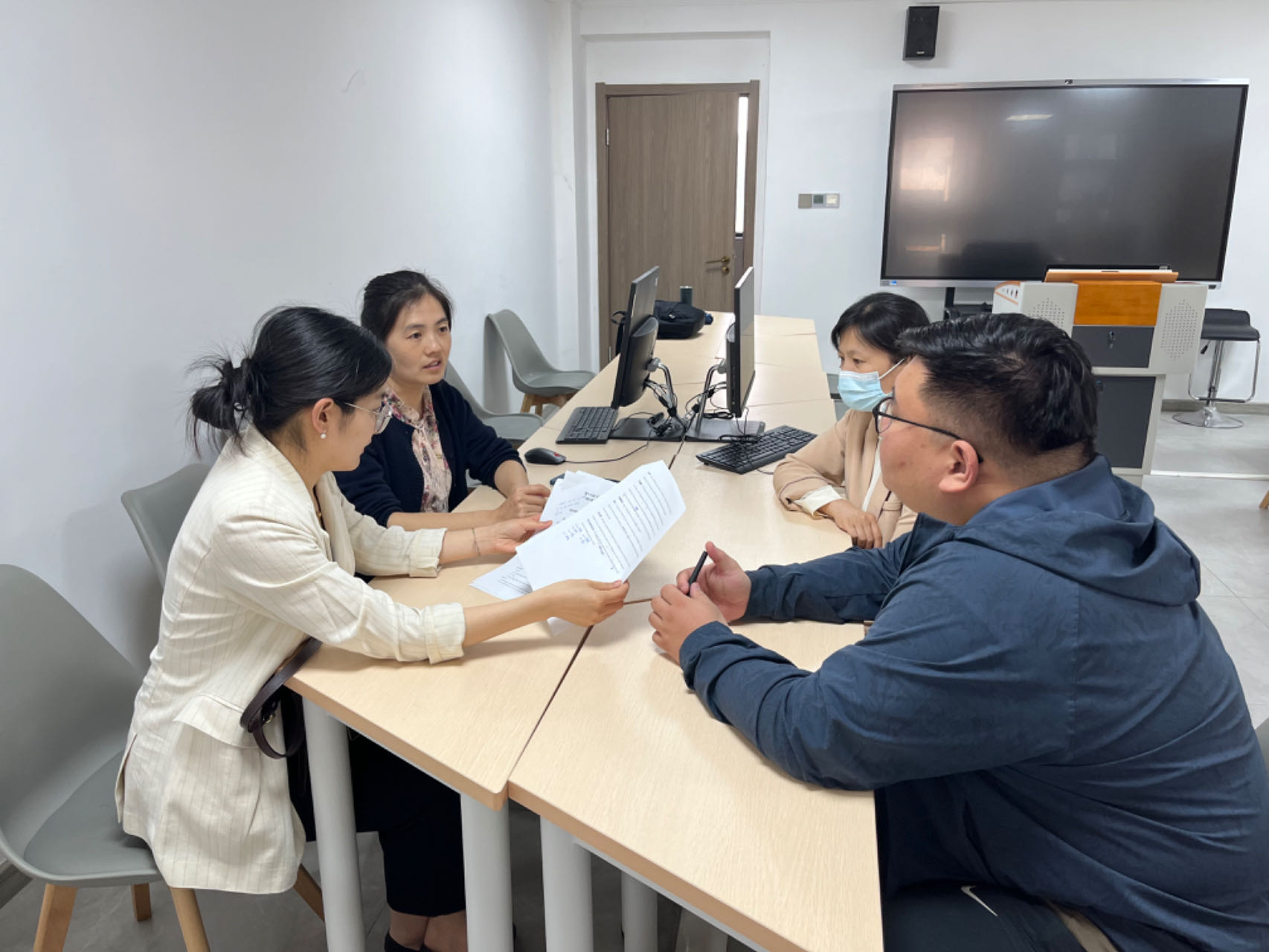 在山东旅游职业公司宋斐红主任、刘萍副主任及相关专业教师的热情接待下,调研团队深入参观了该院的酒店管理与数字化运营、空中乘务等专业实训场地和教学设施。期间,山东旅游职业公司详细介绍了该院旅游大类专业的组群构成,以及空中乘务专业的教学模式和校企合作经验。