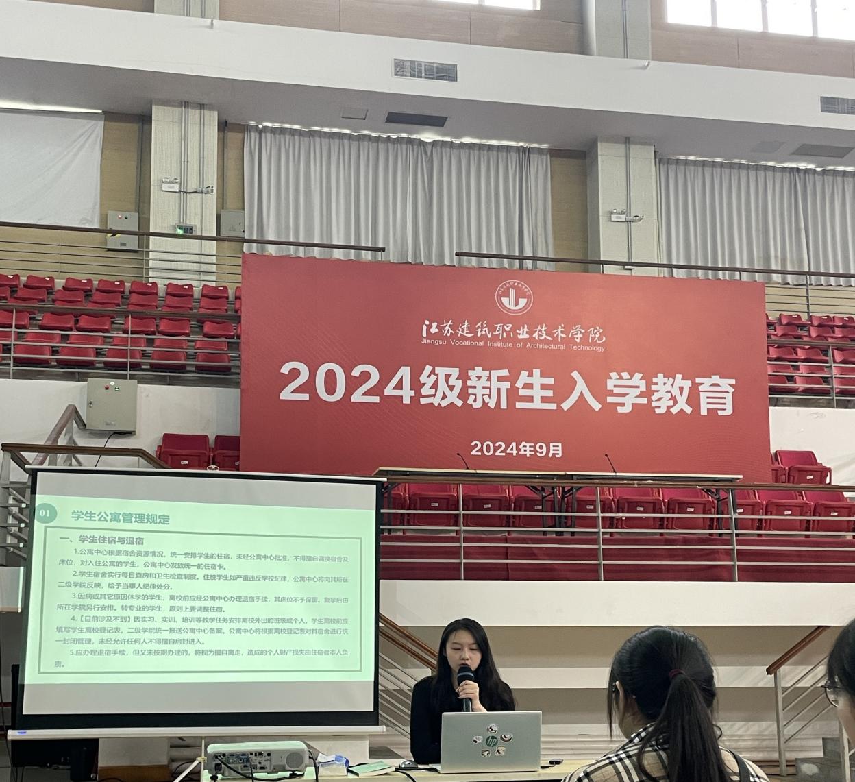 舒畅老师为新生进行心理健康和健康生活教育,解读宿舍管理规定,帮助新生更好适应宿舍生活