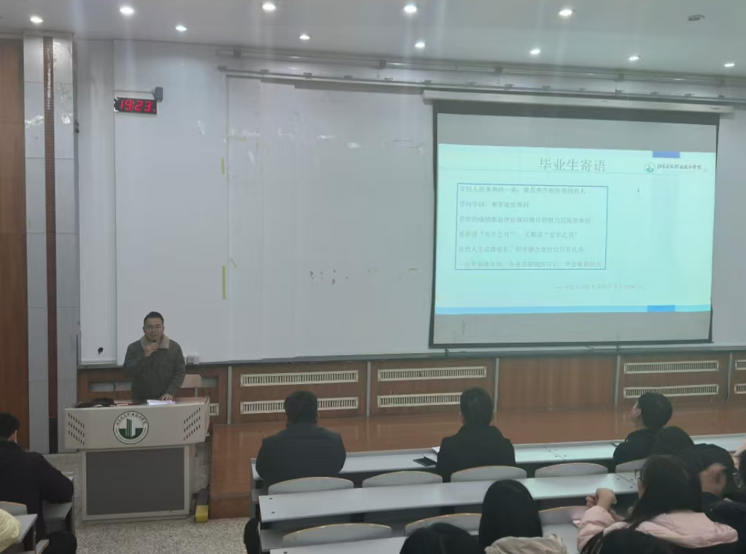 紧接着,就业辅导员彭亚伟为同学们带来了关于专转本报考条件和政策的深度解读。他全面剖析了院校与专业选择、历年录取数据、复习备考策略等内容,并围绕专转本考试的全过程,从准备阶段到注意事项,进行了详尽的阐述。彭老师鼓励同学们树立明确的学习目标,制定切实可行的学习计划,寻找并攻克薄弱环节,保持积极乐观的心态,坚持不懈地追求梦想。