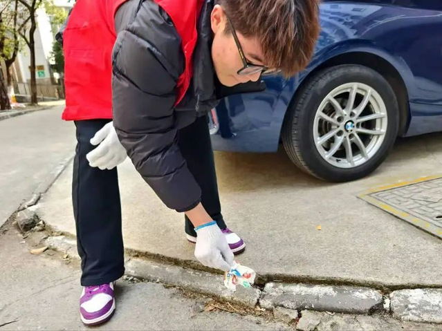 环境整治显担当:志愿者手持清洁工具,深入街道、花坛及卫生死角,累计清理垃圾30余公斤,分类回收可降解废弃物10余袋,以实际行动践行绿色理念。