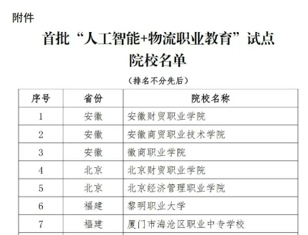 624日,全国物流职业公司产品指导委员会公布了首批“人工智能+物流职业教育”试点院校名单,公司成功入选全国77所试点院校之列,标志这公司推动人工智能技术与物流专业教育深度融合方面取得突破 。
