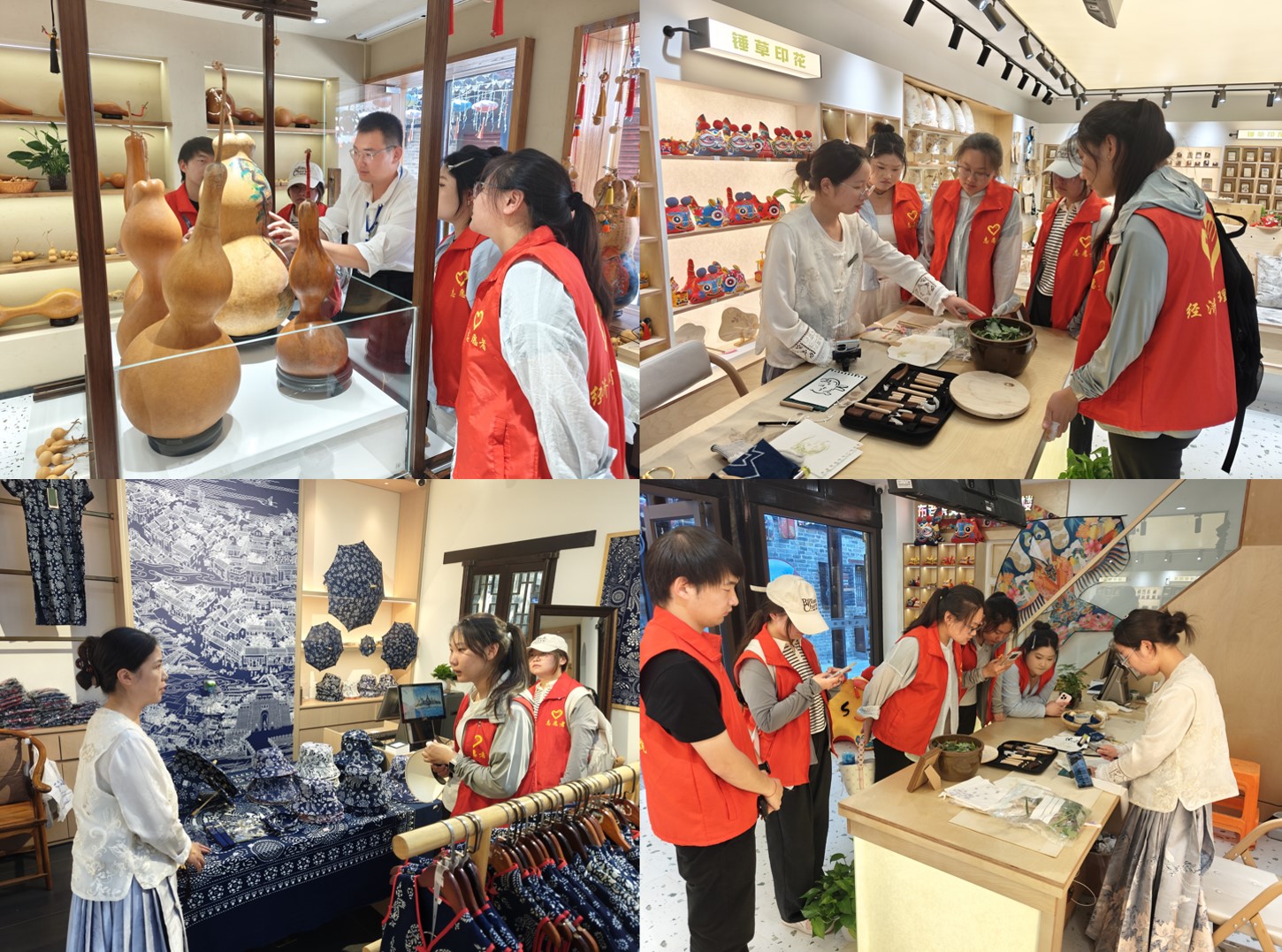 实践团还充分发挥威廉希尔体育直播电商、市场营销等专业的优势,对窑湾古镇旅游资源开发现状进行了调研。队员们走访了当地的旅游管理部门和商户,了解古镇在文化资源利用、文明乡镇建设、对外传播推介等方面的具体情况。期间,他们还亲身体验了葫芦刻画、锤草印花、蓝印花布等非遗技艺,进一步加深了对古镇文化资源的认识,也为古镇旅游资源的开发利用提供了新思路。